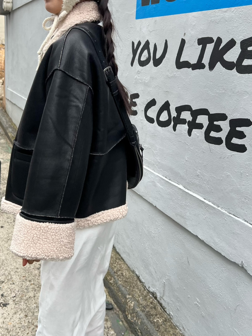 레더와 무스탕 조합,,💚🖤
