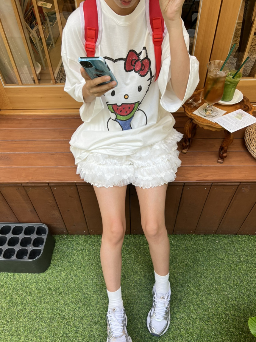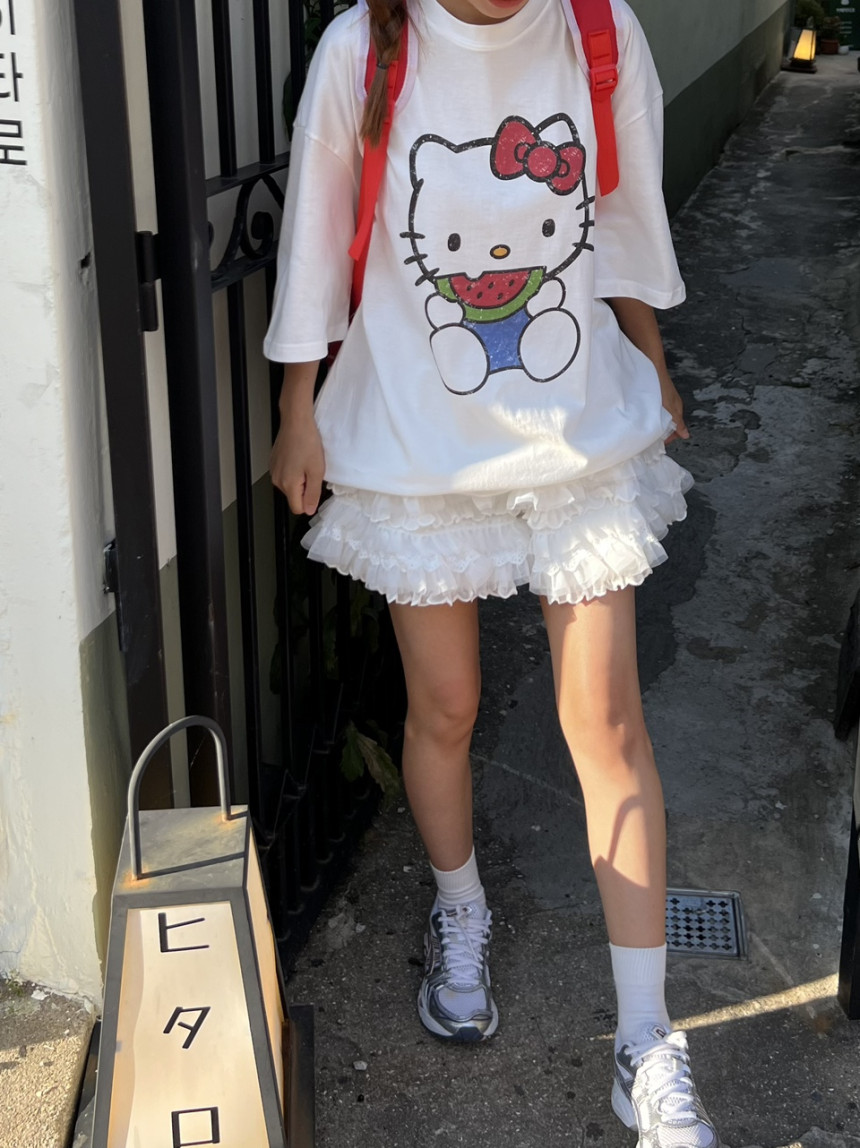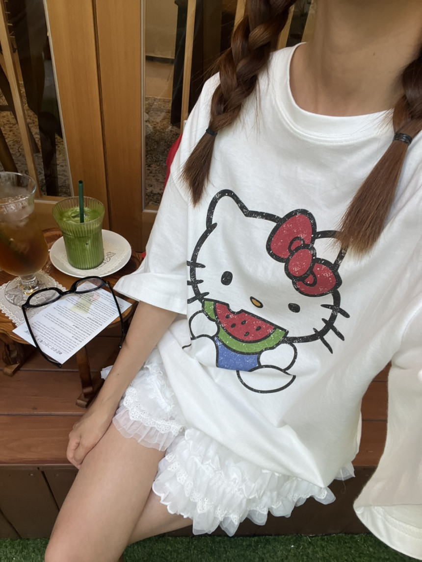프런트 귀여운 키티 프린팅으로