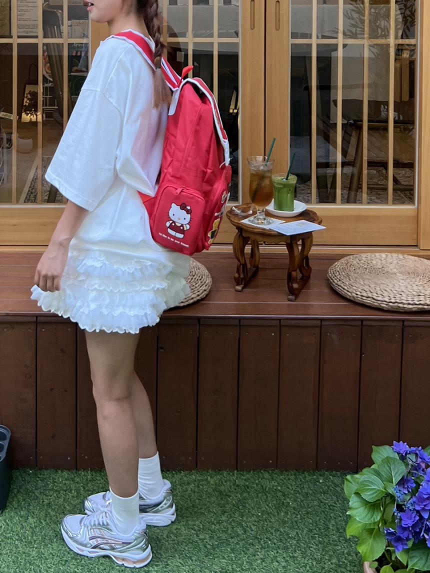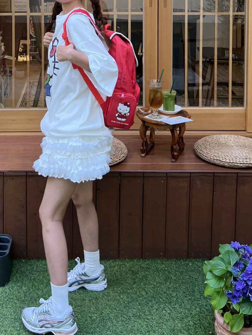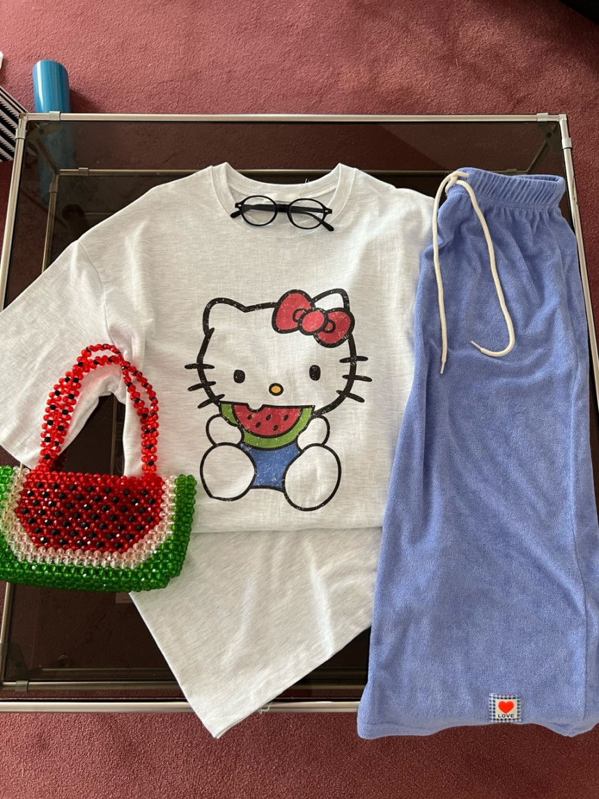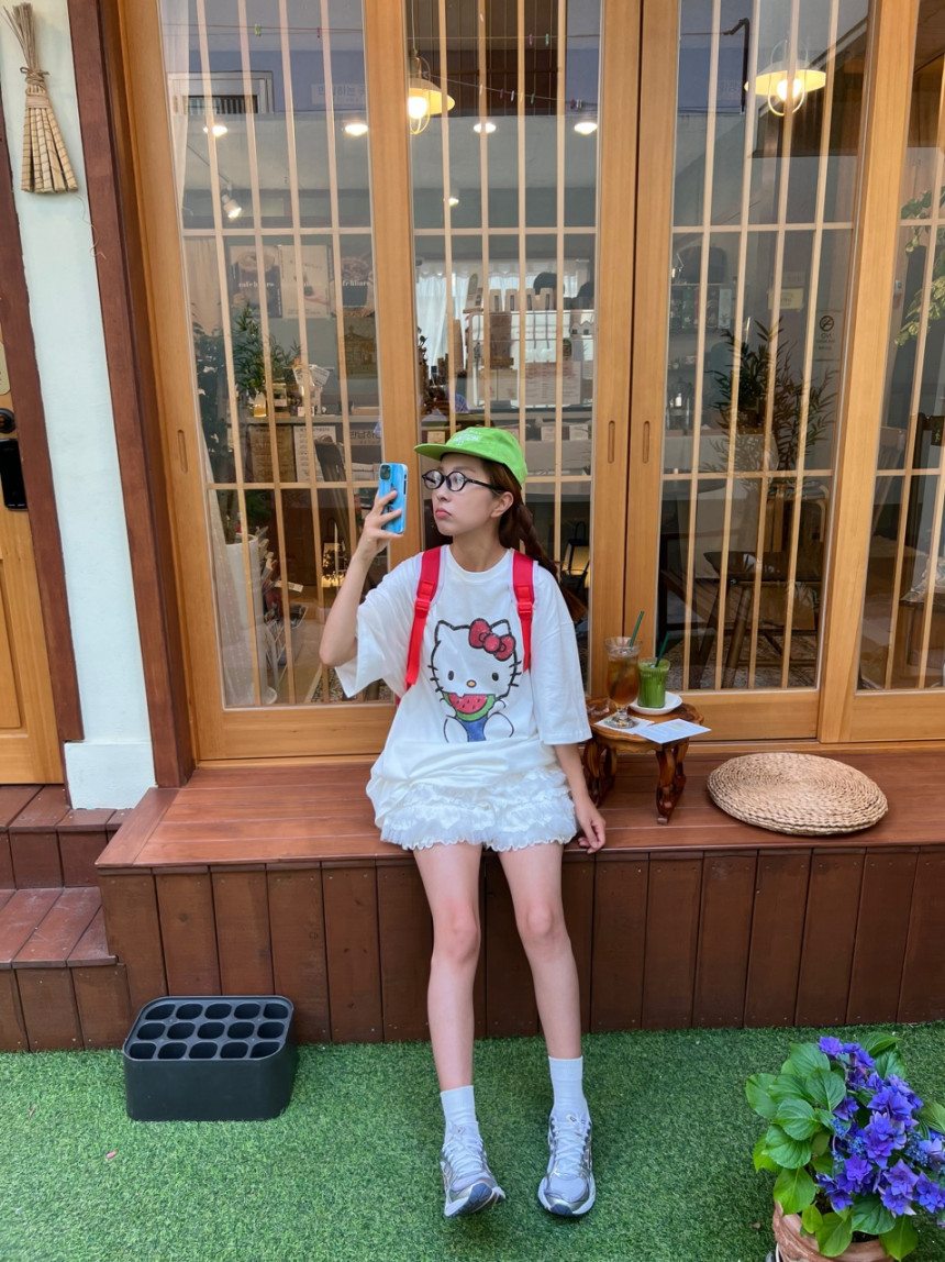 프런트 귀여운 키티 프린팅으로